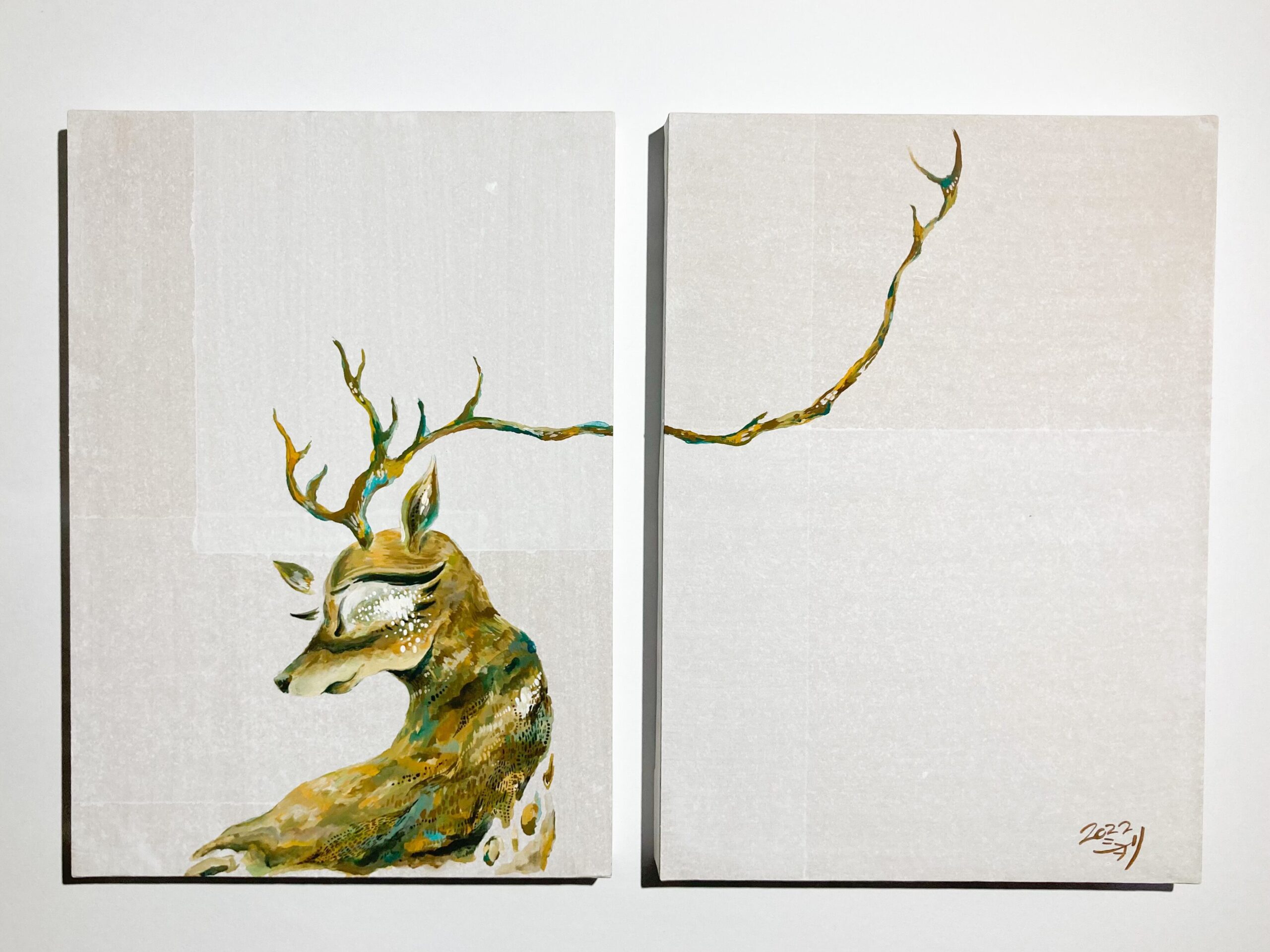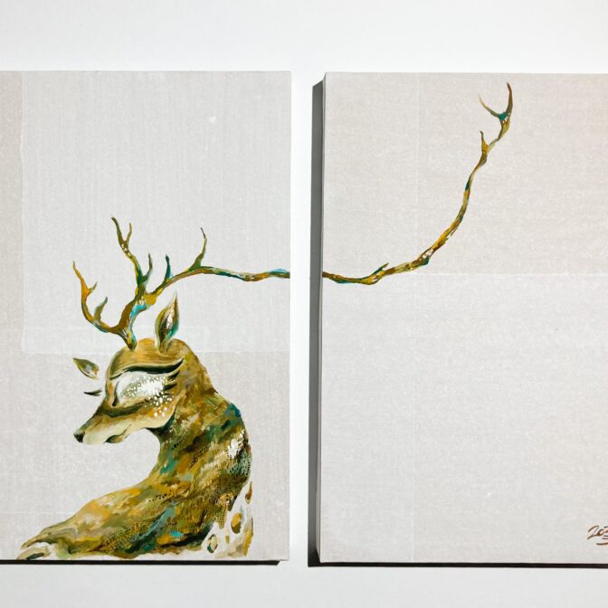 アクリルガッシュアート 樹の生きもの 通常価格 15,000 円 (税込) 購入はこちら 説明 「樹の生きもの」 作品サイズ:W182×H257(㎜) 使用画材、素材:アクリルガッシュ、木製パネル 制昨年:2022年 「萌え」の作品と対の作品です。こちらも同様、B5パネル2枚で1つの作品になります。 関連商品 ステッカー「樹の生きもの」 400 円 (税込) ステッカー「萌え」 400 円 (税込) 萌え 15,000 円 (税込) コメントは受け付けていません。