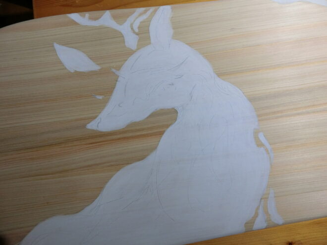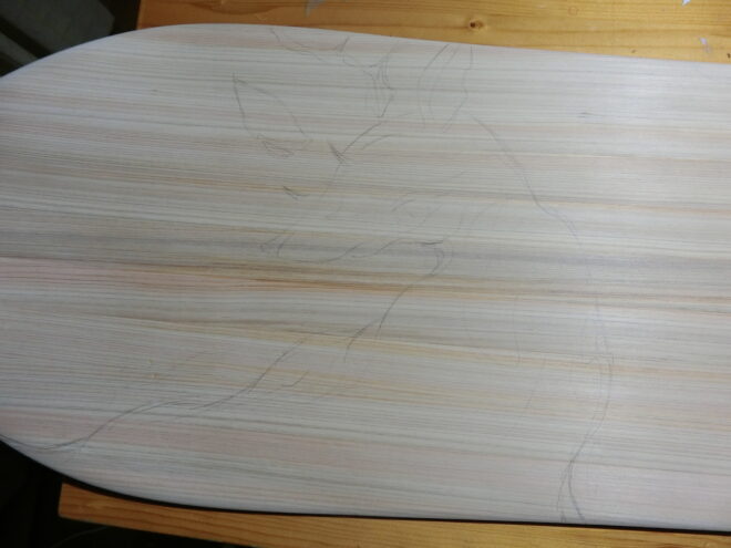 形を整え、下書きが出来上がりましたら、板に写していきます。