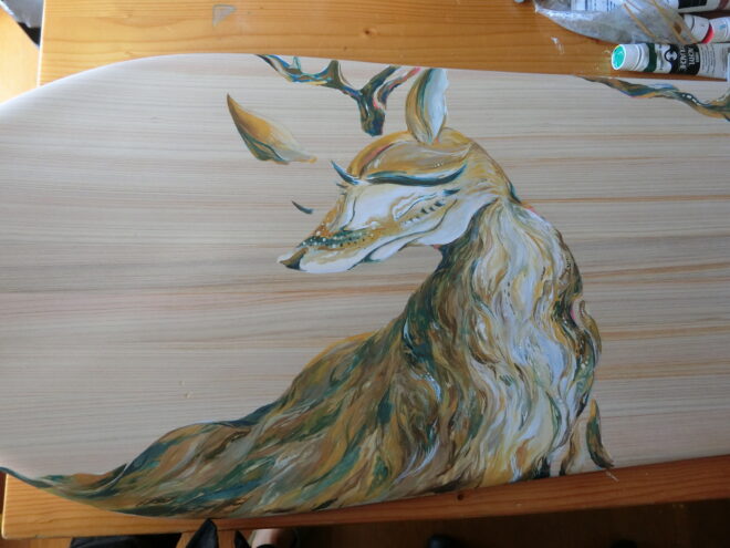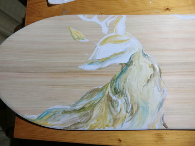 雪板ペイントはもちろん初めてで、紙以外にも描けるものが増えるのはとても楽しいものです。